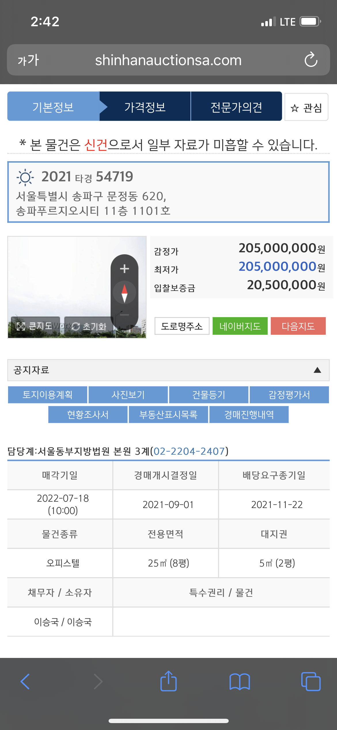 다만 오피스텔 가격이 나중에 어떻게 될지는 알 수 없지만, 강남3구 송파구라는 점과 어느정도 문정동에 신축오피들이 다 지어졌다는 점을 봤을 땐, 개인적인 생각으론 최저가에 낙찰된다면 나빠보이지는 않습니다.