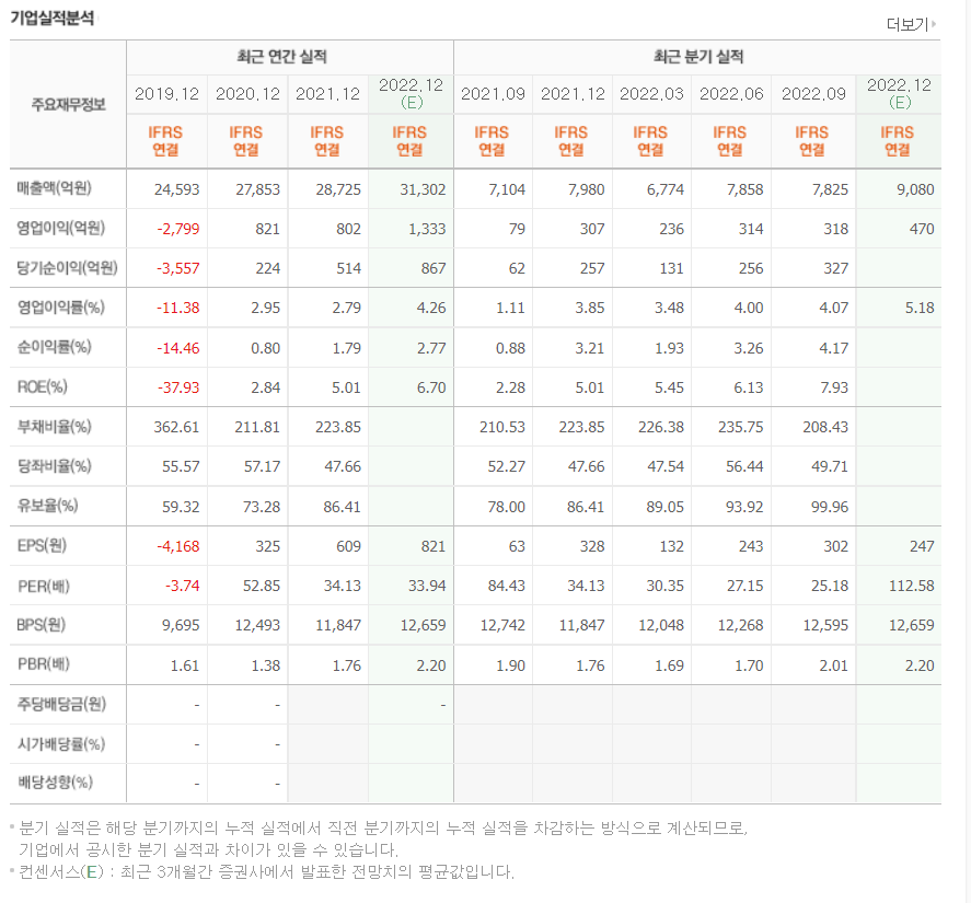 재무재표 역시 매출액도 꾸준히 상승하고 있고 영업이익, 당기순이익, 영업이익률 모두 우상향하고 있는 모습이 보여지고 있습니다.