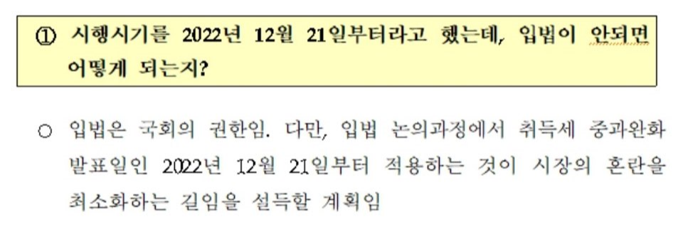 하지만, 질의응답에서 보듯이 해당 내용은 현재 시행예정단계이며, 아직 확정되지 않았다는 것이 중요합니다.